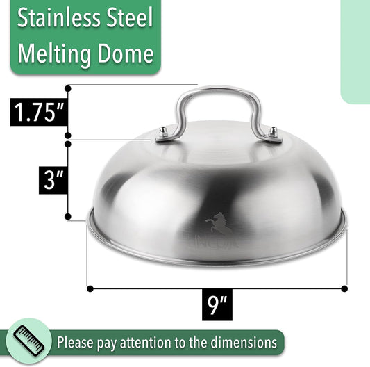 UNCO- Melting Dome, 9 Inch, Stainless Steel, Cheese Melting Dome, Round Basting Cover, Grilling Melting Dome, Cheese Melting Dome for Griddle, Griddle Grill Accessories