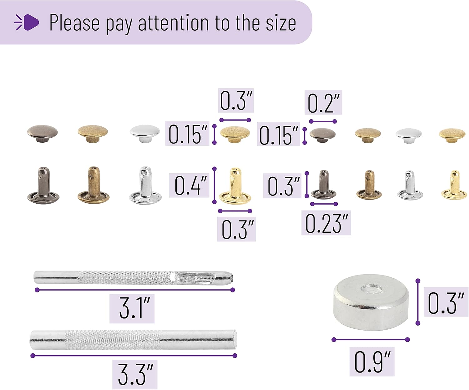 - Package includes 240 pcs of leather rivets in 2 sizes and 4 commonly used colors (gold, silver, bronze, and gunmetal).