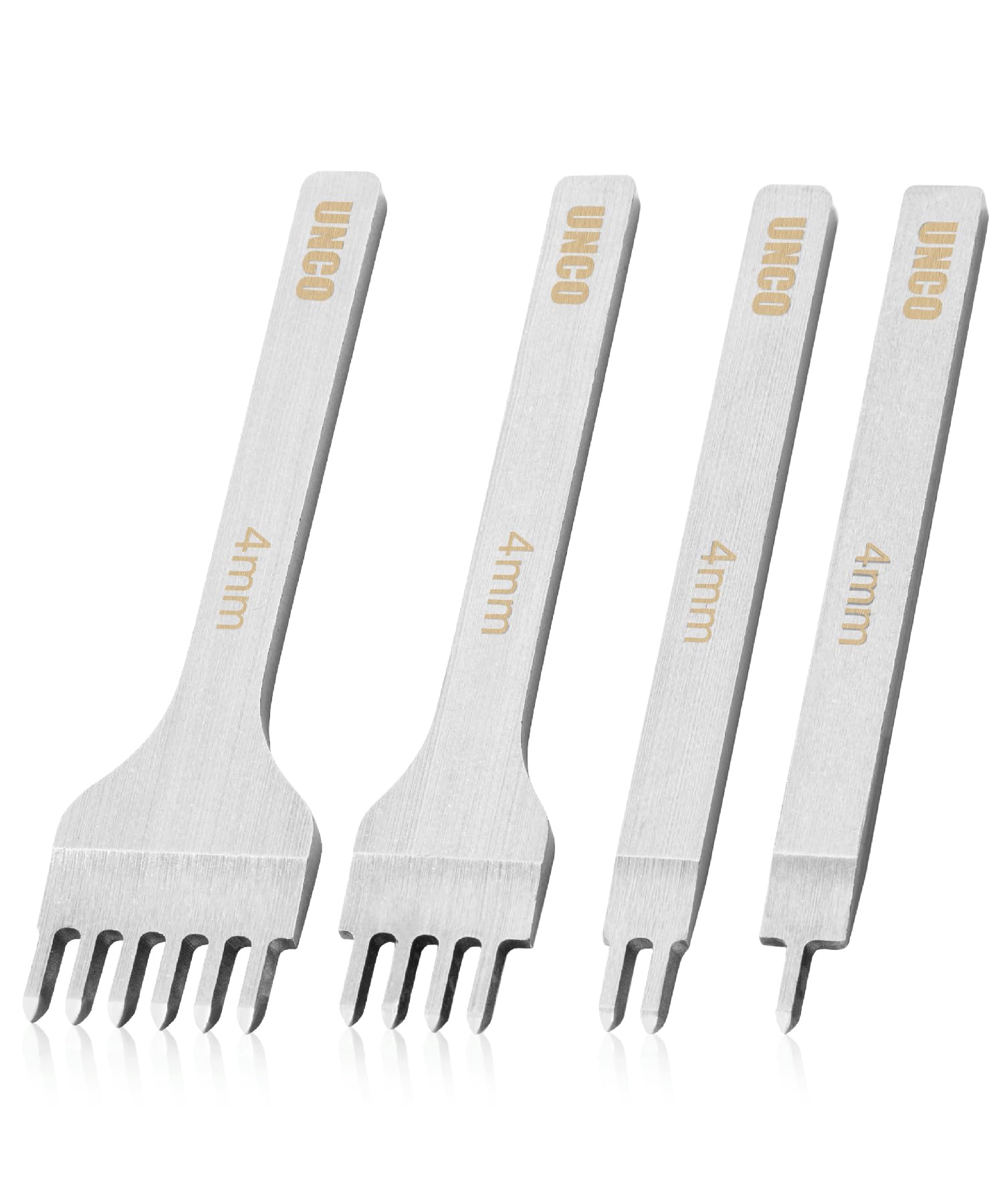 UNCO- Leather Stitching Punch, 4 Pack, 5 mm, 1/2/4/6 Prong, Leather Stitch Punch, Leather Fork Punch, Leather Chisel, Leather Hole Punch Tool, Leather Punch Tool, Stitching Chisel